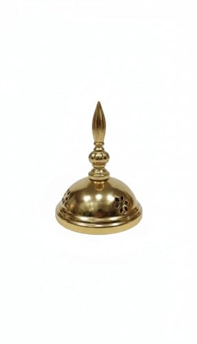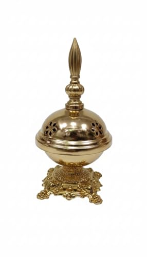 Generic - مبخرة نحاسية ذهبية، تصميم كلاسيكي، قاعدة منحوتة، غطاء مثقب، قمة مدببة