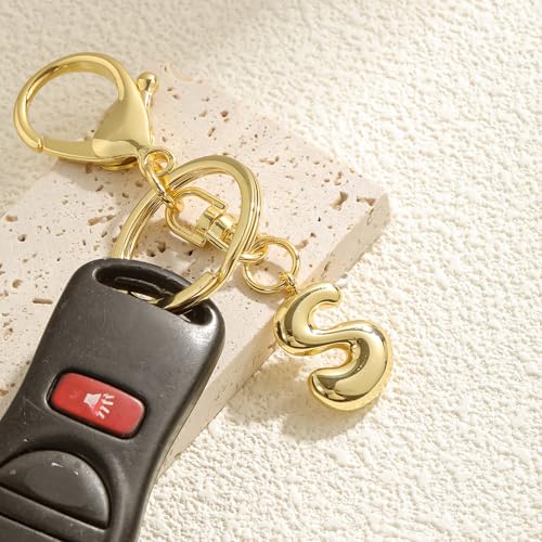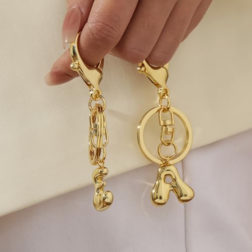 Qitian - سلسلة مفاتيح للنساء بتصميم فقاعات ذهبية - حلية شخصية على شكل حرف هجائي لشنطة اليد