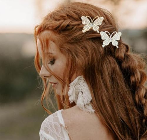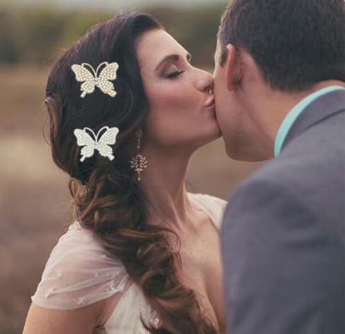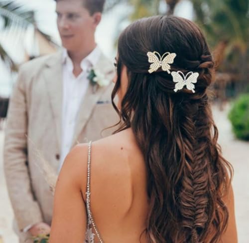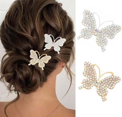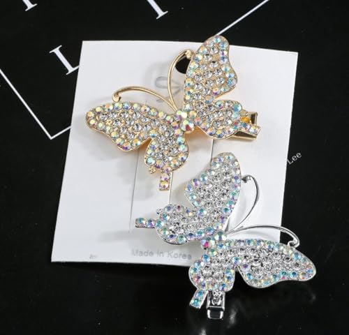 Generic - مشبك شعر على شكل فراشة باللون الذهبي مشابك شعر مرصعة بأحجار الراين ودبابيس شعر من الكريستال للعروس وقطع شعر إكسسوارات شعر للنساء والفتيات (عبوة من قطعتين)