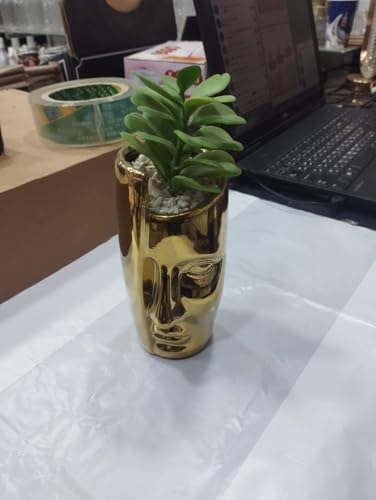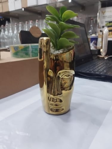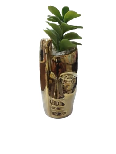 Generic - مزهرية سيراميك ذهبية على شكل وجه مع نبات زينة، ديكور منزلي عصري