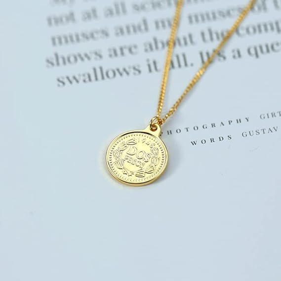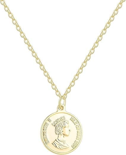 Generic - عقد بدلاية على شكل عملة ذهبية مطلي بالذهب عيار 18 قيراط طول السلسلة 45 سم للنساء