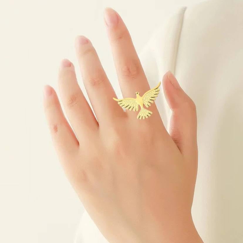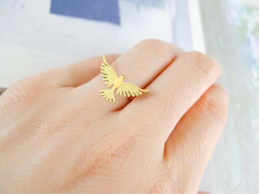 Generic - خاتم ذهبي اللون على شكل نسر للنساء، تصميم عصري، مجوهرات متدلية للأذن، مجوهرات هدية للعطلات