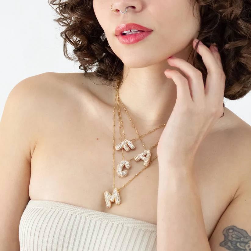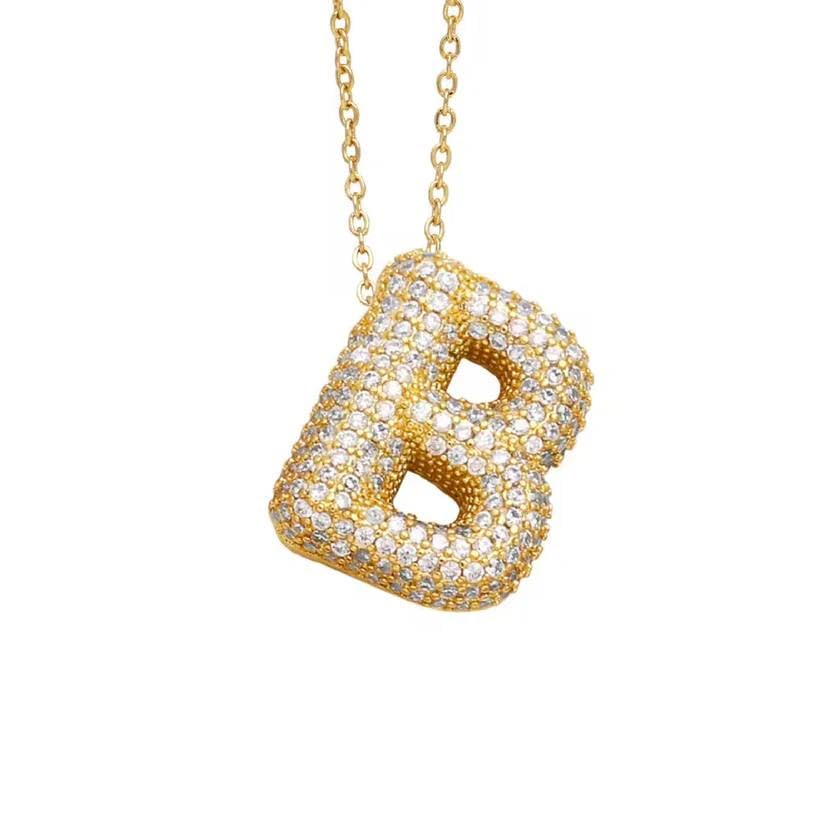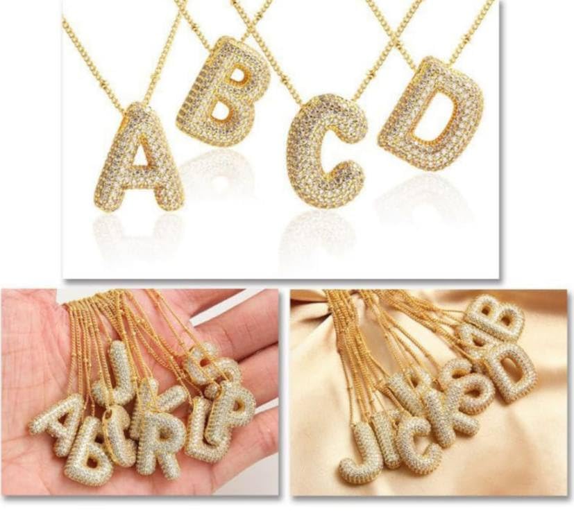 Generic - عقد بتصميم حروف لامعة من A إلى Z مصنوع من الفولاذ المقاوم للصدأ، سلسلة رقبة مرصعة بالزركون للنساء وهدايا أعياد الميلاد، لون ذهبي