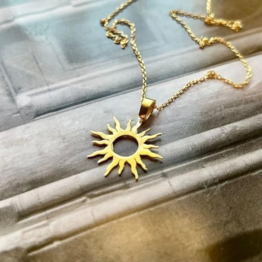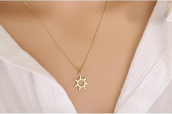 Generic - قلادة شمس ذهبية اللون، سلسلة رقيقة، مع داليه على شكل شمس مشرقة، مجوهرات أنيقة للنساء