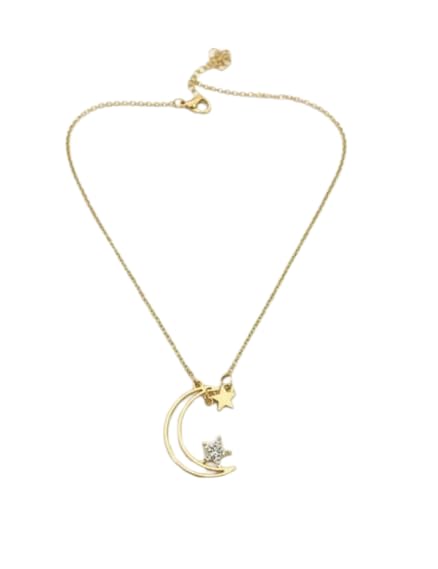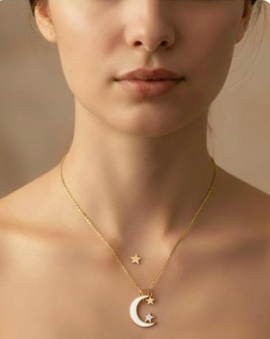 GOGO.EG - قلادة ذهبية على شكل هلال ونجوم مرصعة بحجر الراين، سلسلة قابلة للتعديل، مجوهرات بدلاية سماوية - YF15