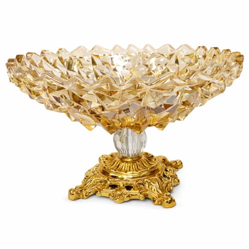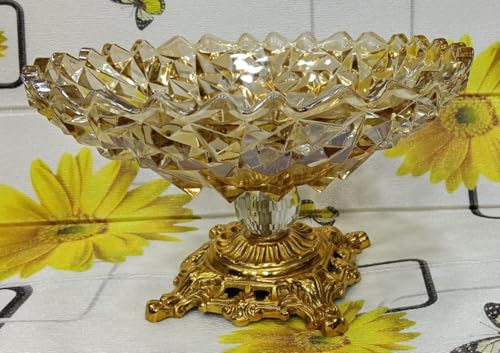 Generic - طبق فاكهة كريستال ذهبي، قاعدة معدنية منحوتة، تصميم ماسي فاخر، ديكور طاولة كلاسيكي
