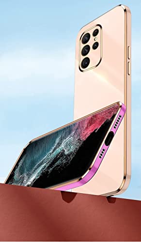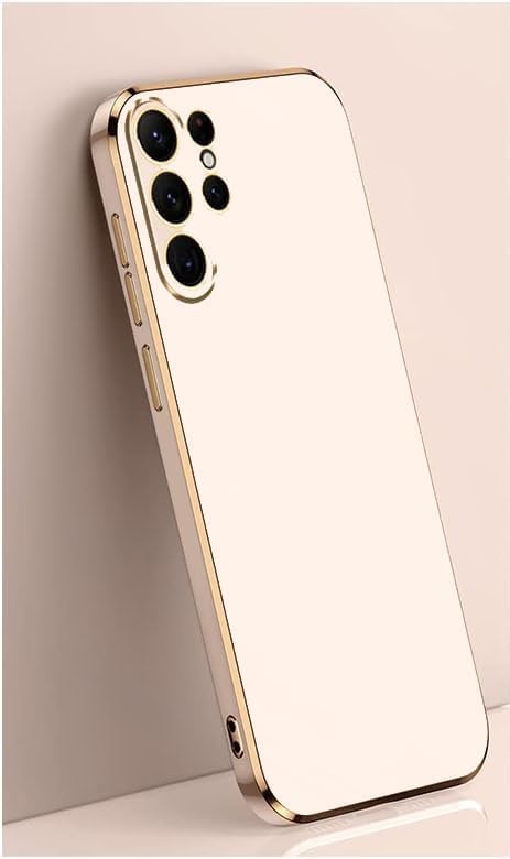 Generic - [ سلسلة جرابات بحافة بلون ذهبي ] جراب ناعم مضاد للصدمات والخدوش من السيليكون والبولي يوريثين المقاوم للحرارة ومطلي باللون الذهبي لموبايل سامسونج جالاكسي S23 ULTRA كاشمير سيليكون بولي اللدن بالحرارة