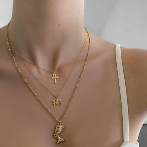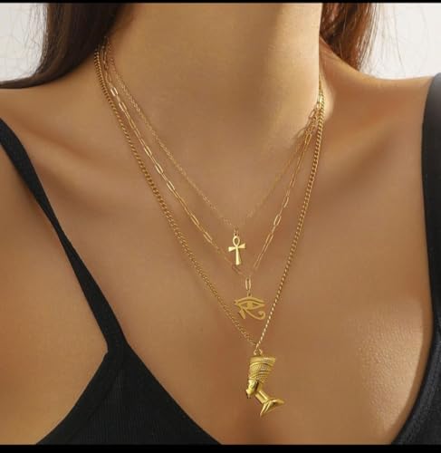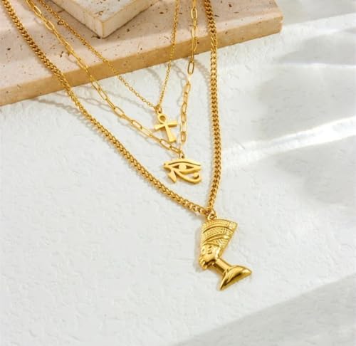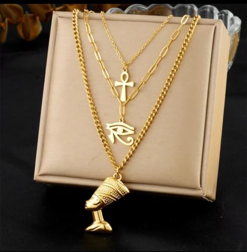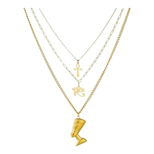 Generic - طقم قلادات مصرية ذهبية، ٣ قطع، مع قلادات فرعونية وصليب وعين حورس