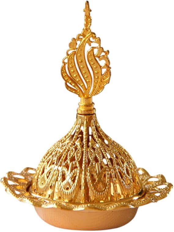 Generic - مبخرة ذهبية للعيد بتصميم عربي كلاسيكي، مبخرة معدنية بتصميم كلاسيكي للعلاج العطري، حامل بخور، حامل شموع، مبخرة للديكورات الإسلامية لشهر رمضان المبارك والعيد، k