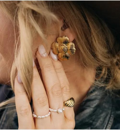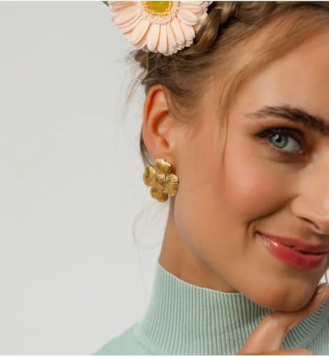 Generic - حلق ذهبي على شكل زهرة، تصميم أنيق، مجوهرات عصرية