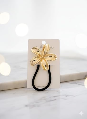 Generic - ربطة شعر مع زهرة ذهبية، حلقة شعر مطاطية سوداء، إكسسوار شعر معدني بتصميم زهرة