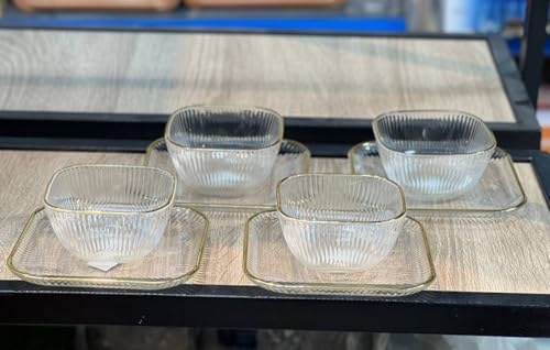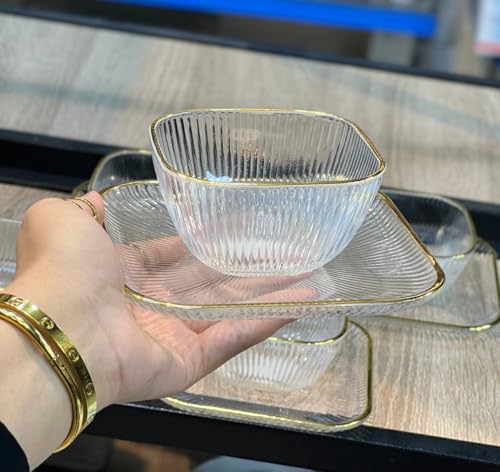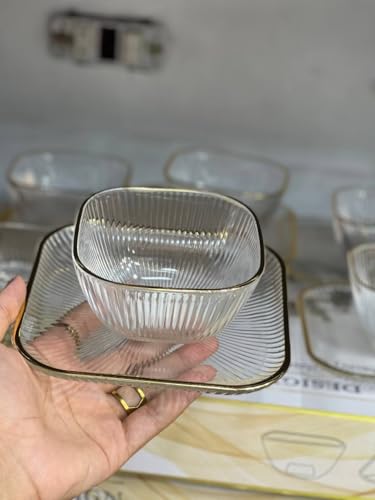 Generic - طقم خشاف منقوش بإطار جولد؛ 12 قطعة (6 بولات + 6 أطباق)؛ تصميم فاخر ومتين للتقديم؛ مناسب للحلويات والفاكهة والمكسرات والسلطات؛ خامة عالية الجودة بلمسة ذهبية أنيقة