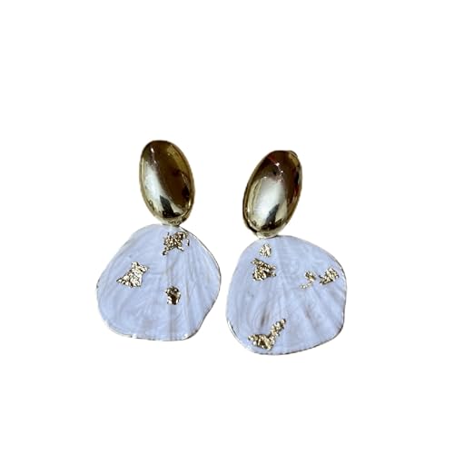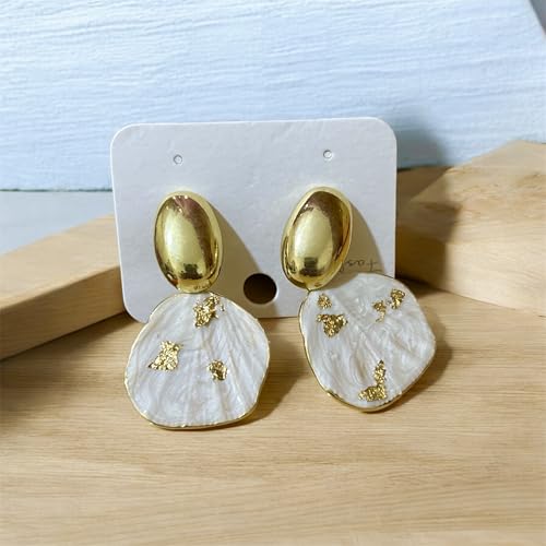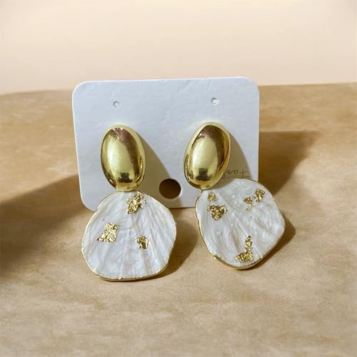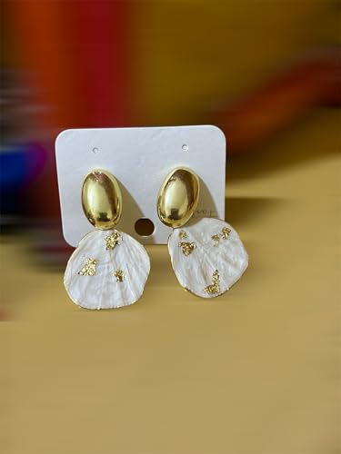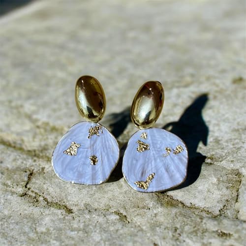 cherry accessories - اقراط متدلية ذهبية هندسية مع راتنج رخامي ابيض ورقائق ذهبية - اقراط متدلية للنساء
