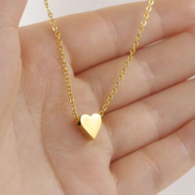Generic - عقد بقلادة على شكل قلب ذهبي، تصميم سلسلة وصلات، لمسة نهائية مصقولة
