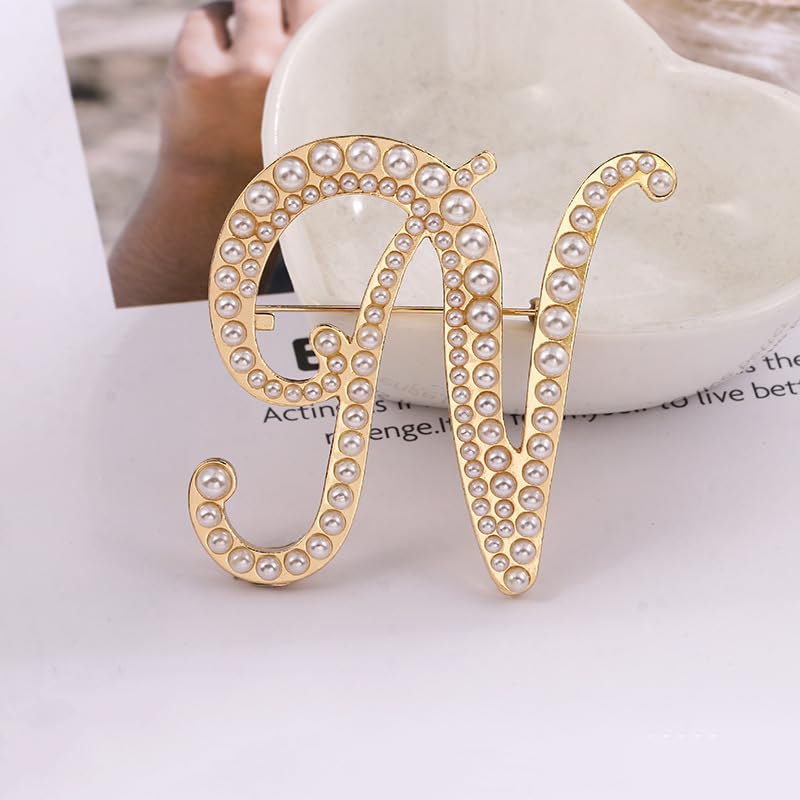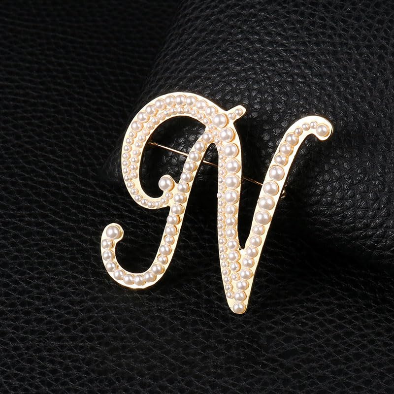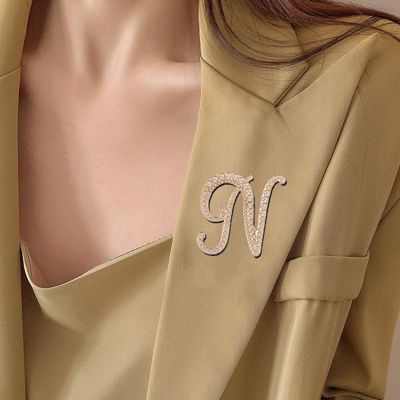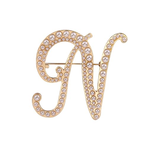 liveliwithmin - دبوس بروش ذهبي بتصميم الحرف الأول A-Z مطرز باللؤلؤ الأبيض، تصميمات من 26 حرف، دبوس صدر بحروف كبيرة للنساء والرجال والفساتين والبدلة والسويتر، مجوهرات عصرية للخريف والشتاء