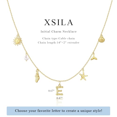 XSILA - سلسلة بتصميم بوهو للشاطئ بدلاية على شكل الحرف الأول من الاسم من A-Z للنساء والفتيات، مطلية بالذهب عيار 14 قيراط، سلسلة مخصصة تحمل اسم مونوجرام، قابلة للتخصيص