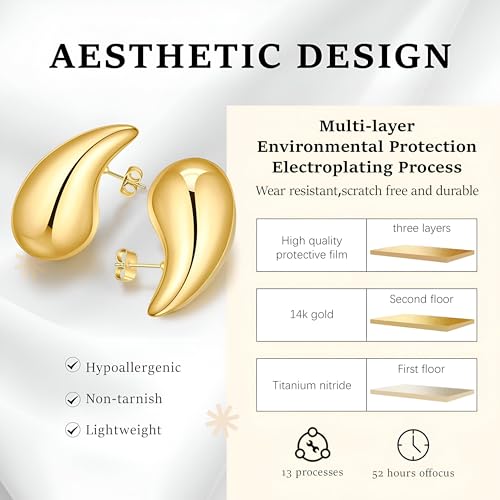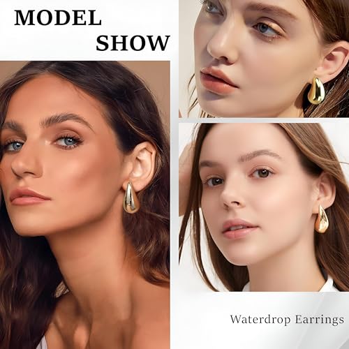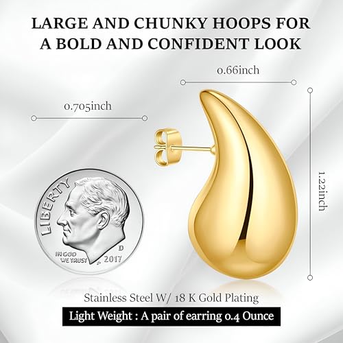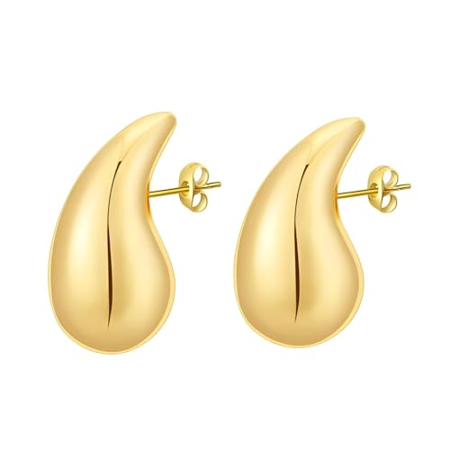 Generic - مجوهرات ذهبية - اقراط حلقية مكتنزة مع لمسات متدلية على شكل دمعة للنساء، مصنوعة من طلاء ذهبي عيار 18 قيراط لا يسبب الحساسية، مثالية لعشاق الموضة العصرية