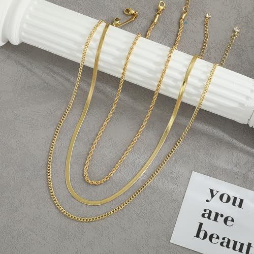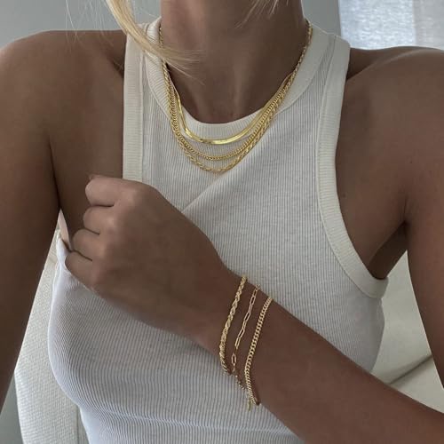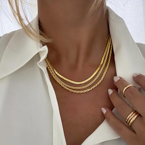 Dodder - سلسلة متعددة الطبقات بطلاء ذهبي عيار 14 قيراط، مع طوق رقبة ضيق بتصميم متعرج