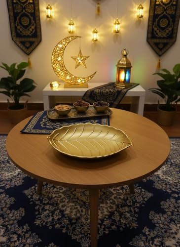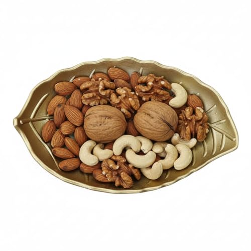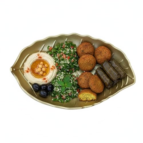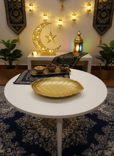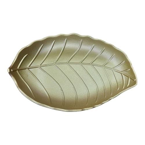 Generic - طبق تقديم وديكور بتصميم ورقة شجر ذهبية - طبق فاخر للمكسرات والتمر والمقبلات - قطعة فنية أنيقة لطاولة القهوة والمناسبات رمضان والأعياد - حجم كبير 30*22 سم