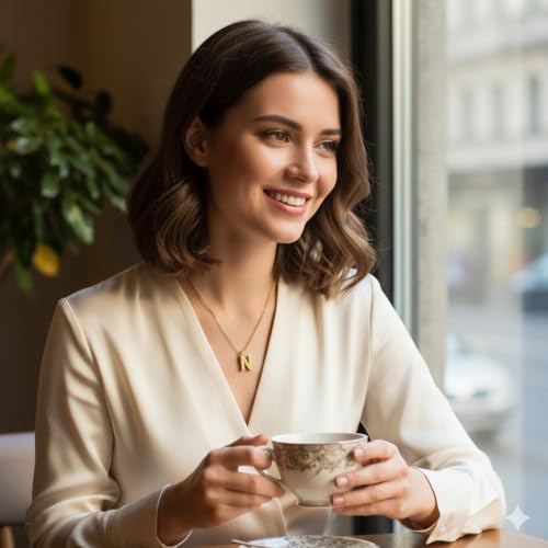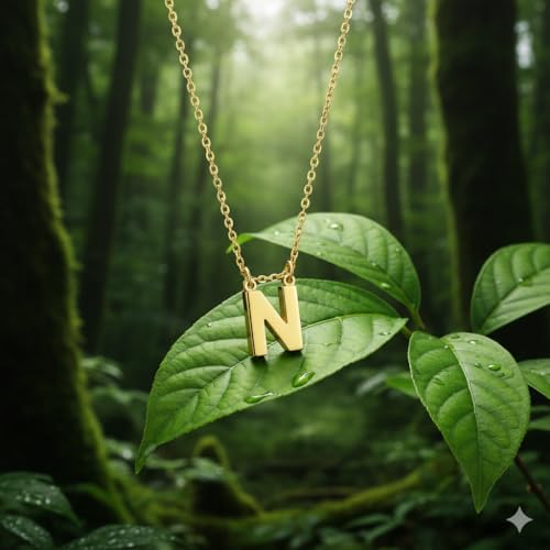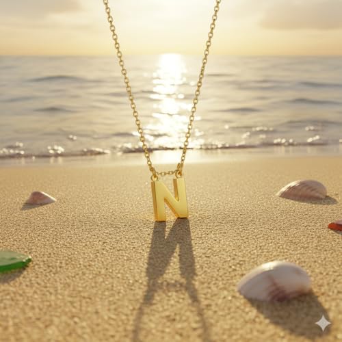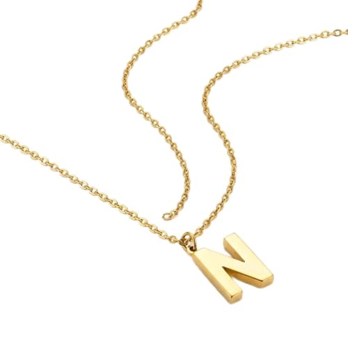 Generic - سلسلة حرف ' N ' الذهبية للنساء مطلية ذهب عيار 18 قيراط | دلاية حرف انيقة ثلاثية الأبعاد | مجوهرات ناعمة شخصية وعصرية | هدية عيد ميلاد مثالية | من الاستانلس ستيل المقاوم للصدأ والبهتان