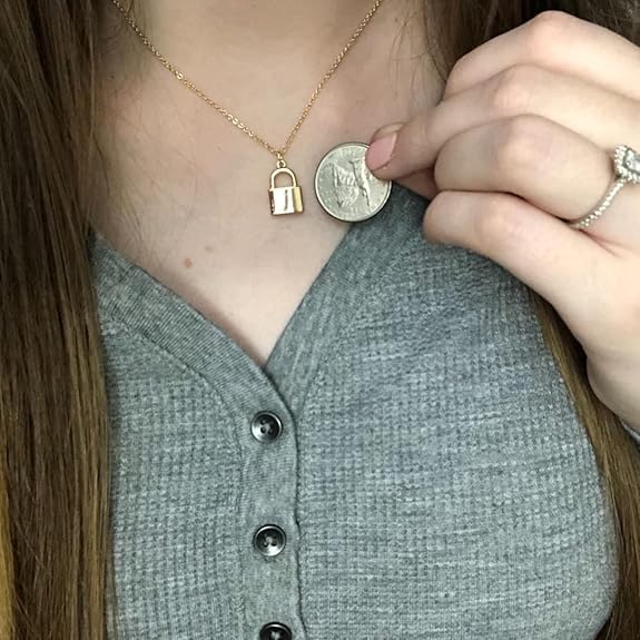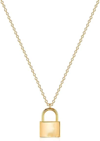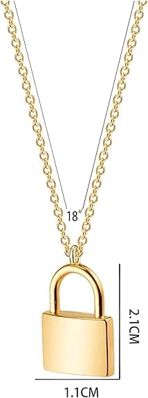 Generic - عقد بدلاية قفل ذهبية سلسلة مطلية بالذهب عيار 14 قيراط للنساء