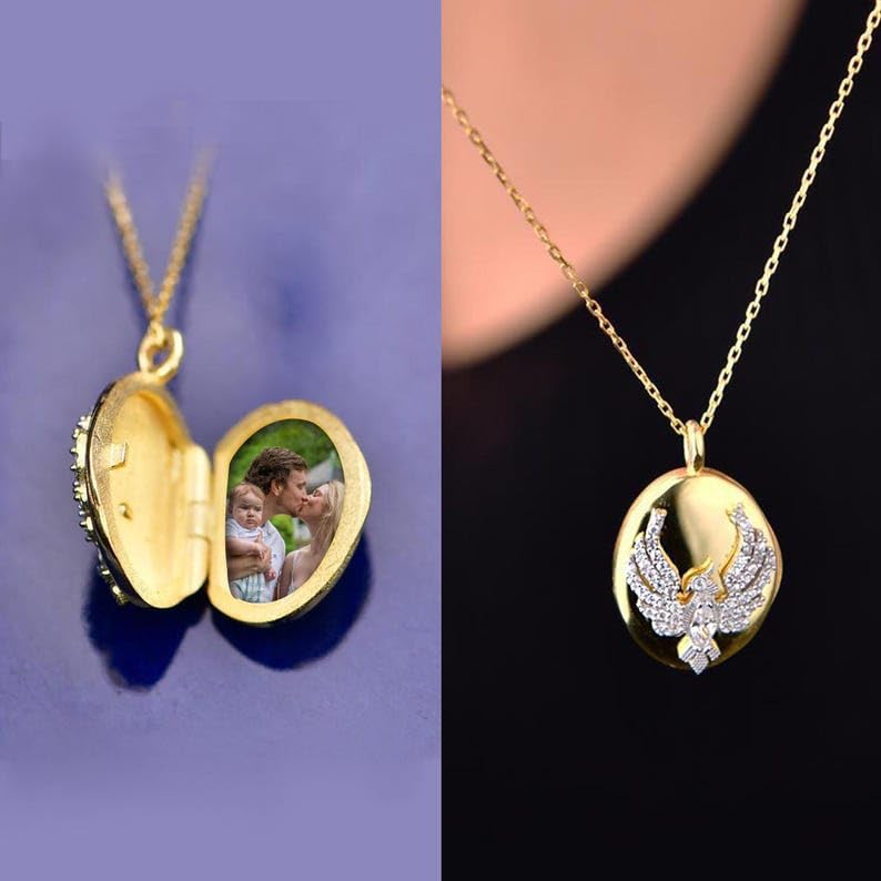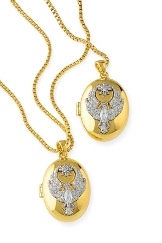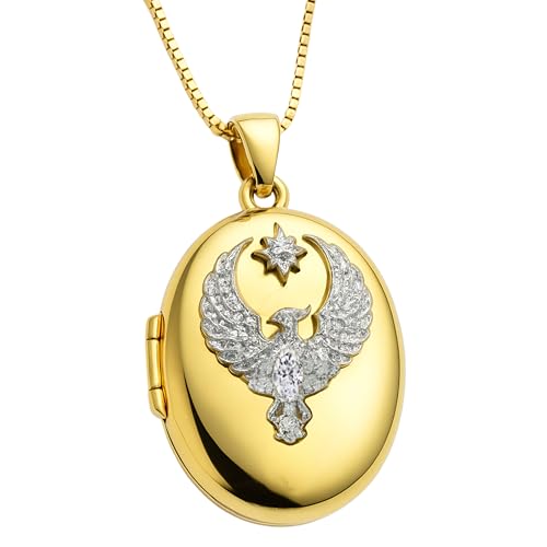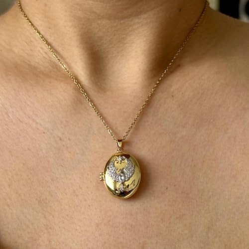 Generic - قلادة ذهبية للنساء - قلادة بيضاوية بتصميم نسر كريستالي ونجمة، تفتح لحمل الصور الشخصية - هدية مجوهرات تذكارية انيقة