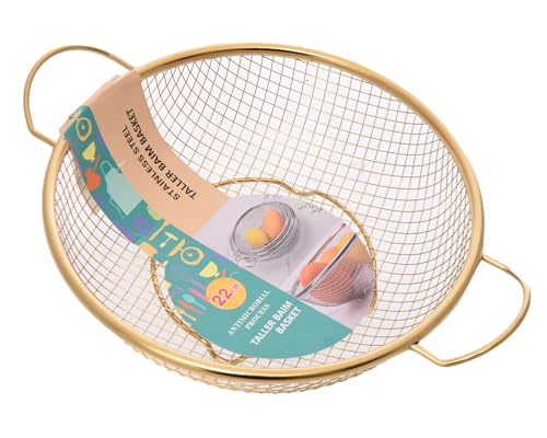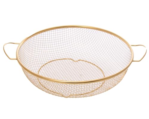 Generic - سلة مصفاة شبكية ذهبية بمقابض مزدوجة لمنخل المطبخ للطبخ مقاس 22 سم