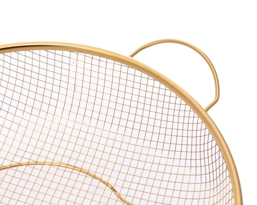 - تصميم فاخر: سلة مصفاة شبكية عصرية بلمسة نهائية ذهبية ومقابض مزدوجة متينة لقبضة مريحة وسهولة في التعامل.