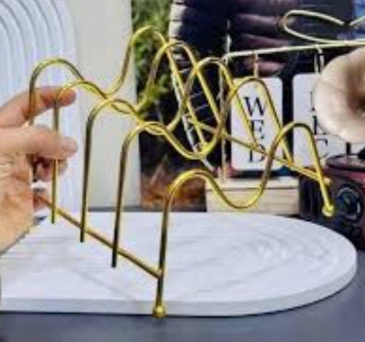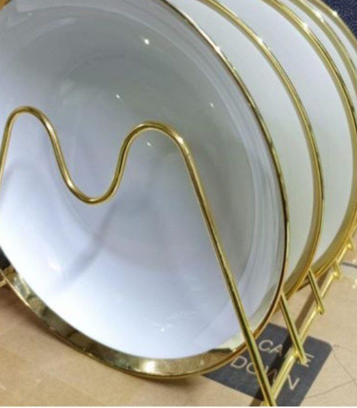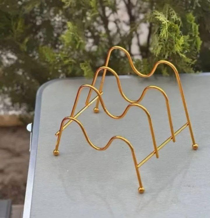 - تصميم عملي: حامل أطباق معدني ذهبي أنيق بـ 7 خانات لتنظيم وعرض الأطباق والصواني بشكل مرتب وجذاب