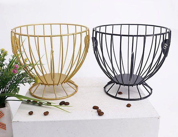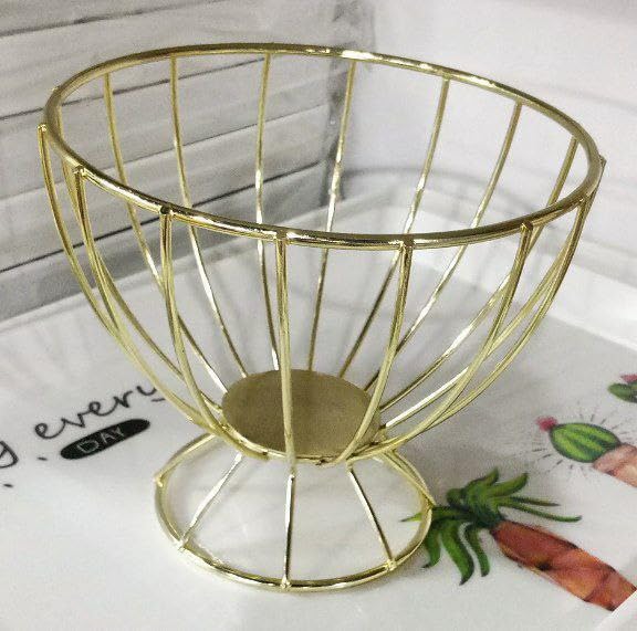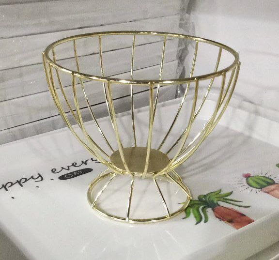 - التصميم العصري: سلة معدنية ذهبية أنيقة بتصميم شبكي دائري، مثالية للديكور المنزلي العصري