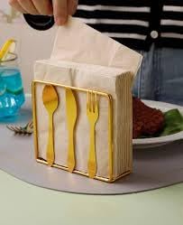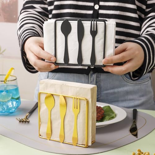 - تصميم جذاب: حامل مناديل أنيق من المعدن الذهبي على شكل أدوات مائدة بتصميمات على شكل شوكة وملعقة وسكينة، مما يضيف لمسة ديكور إلى مطبخك أو منطقة تناول الطعام.