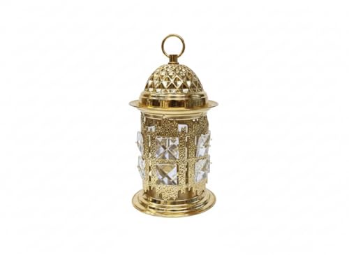 Generic - فانوس معدني ذهبي استانلس ستيل مع زخارف كريستال وتصميم مخرم