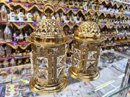 - تصميم فاخر: فانوس زينة مصنوع من الاستانلس استيل بلون ذهبي لامع مع تفاصيل معدنية راقية تضفي لمسة من الأناقة والفخامة على ديكور منزلك
