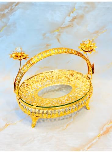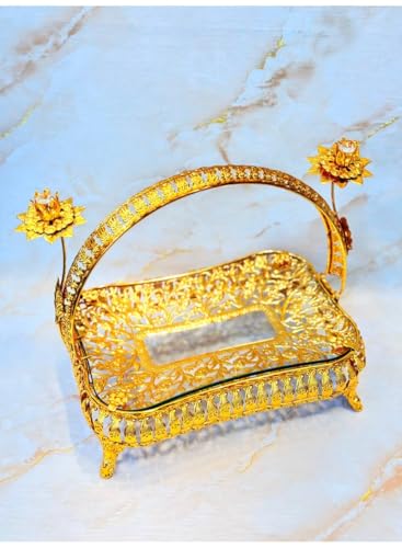 generic - رف اطباق معدني ذهبي، رف اطباق زجاجي للبسكويت والمخبوزات والفواكه والوجبات الخفيفة