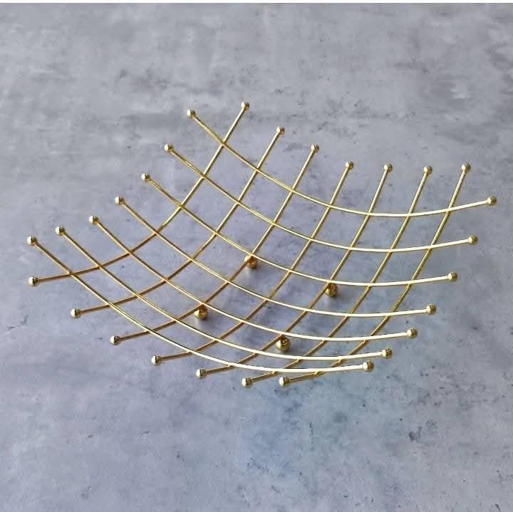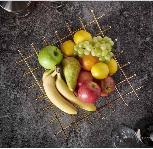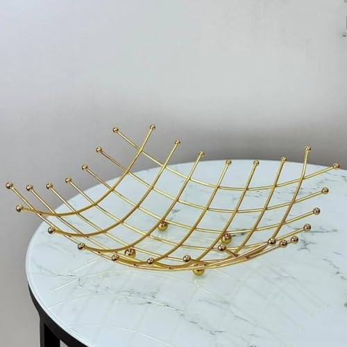 Generic - سلة الفواكه والخضروات من أسلاك معدنية ذهبية - منظم وعاء فاكهة مزخرف بإطار معدني لغرفة المعيشة ، المطبخ، سطح الطاولة مقاس 28*8سم