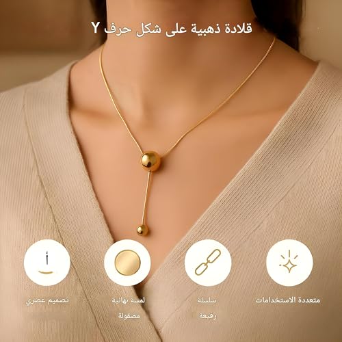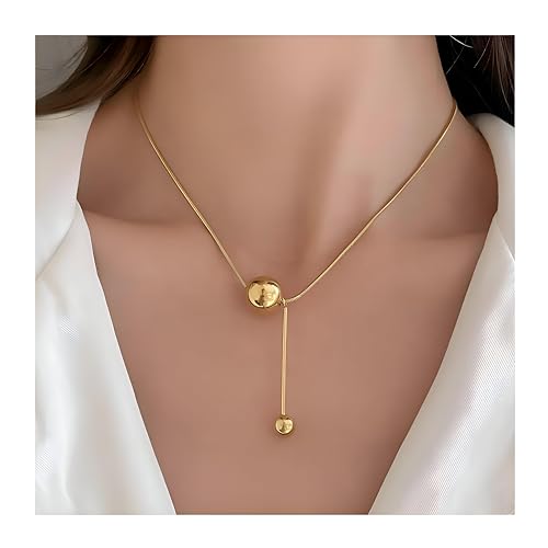 Generic - قلادة ذهبية - تصميم كرة خرز هندسي انيق، مثالية للنساء اللواتي يبحثن عن مجوهرات عصرية بسيطة، رائعة كهدية مدروسة أو إكسسوار شخصي