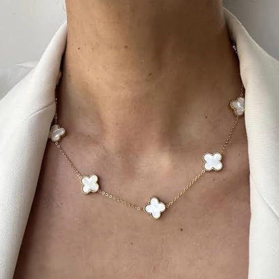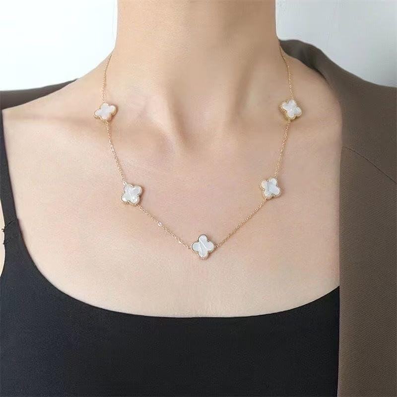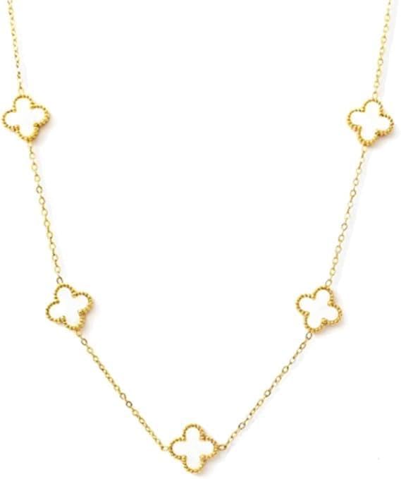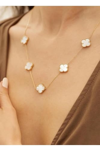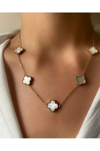 Generic - قلادة ذهبية - قلادة رائعة من أربع أوراق برسيم مع سلسلة رقيقة وتصميم محطة زهور لإضفاء لمسة من الأناقة