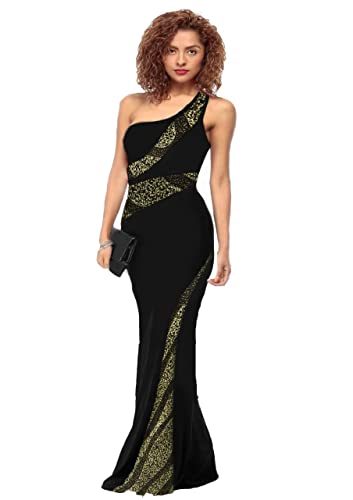 Generic - فستان سهرة بكتف واحد للنساء بلون ذهبي