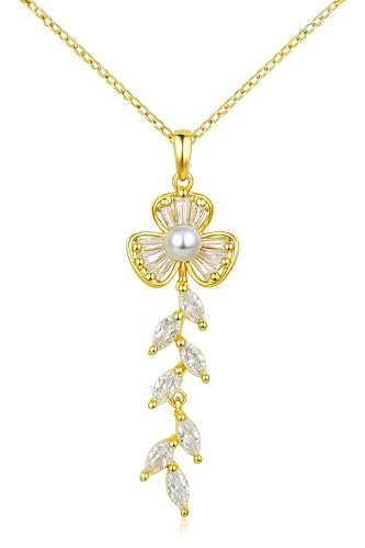 Generic - قلادة ذهبية بتصميم زهرة اللؤلؤ - قلادة انيقة قابلة للتعديل مع لمسات من الماس، قلادة اوراق الكرمة، لمسة نهائية مضادة للبهتان، هدية مثالية لعيد الحب للنساء والصديقات.