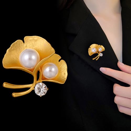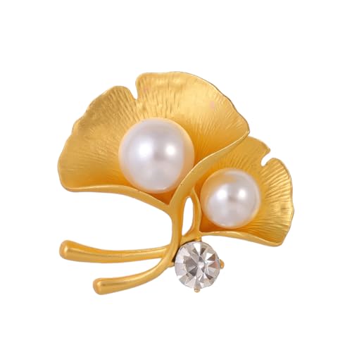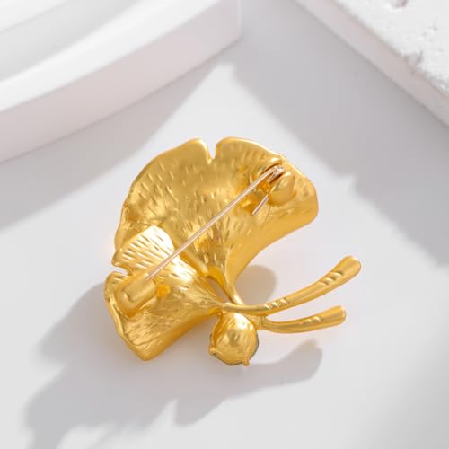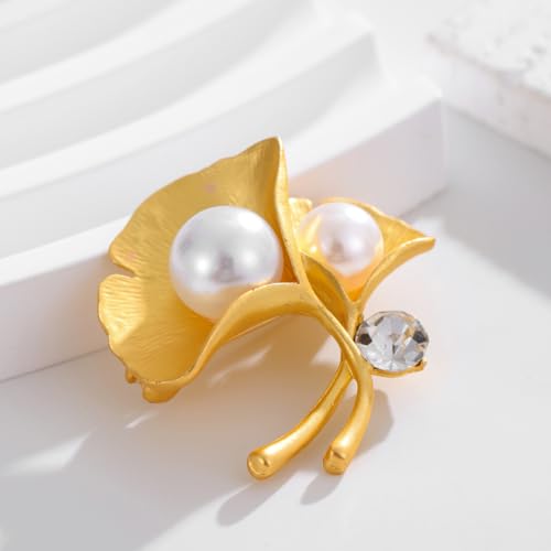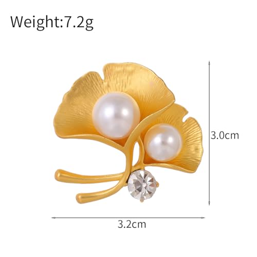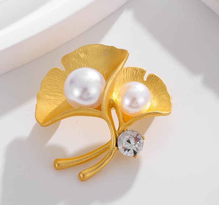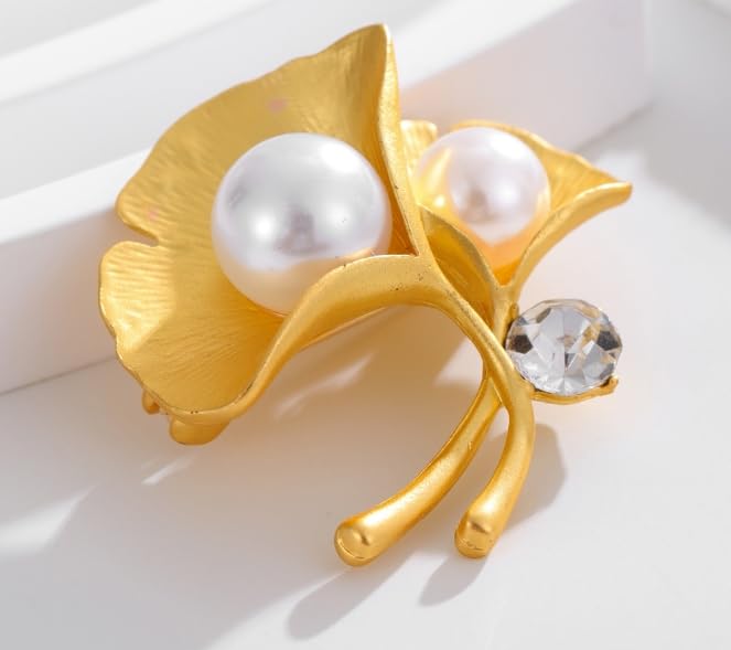 liveliwithmin - دبوس بروش ذهبي لؤلؤي على شكل أوراق شجر القيقب الجنكة واللؤلؤ الابيض، دبوس أمان أنيق للنساء