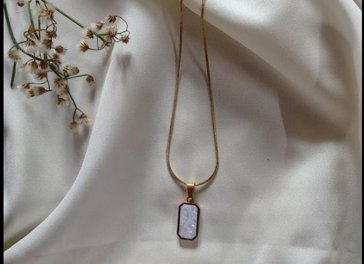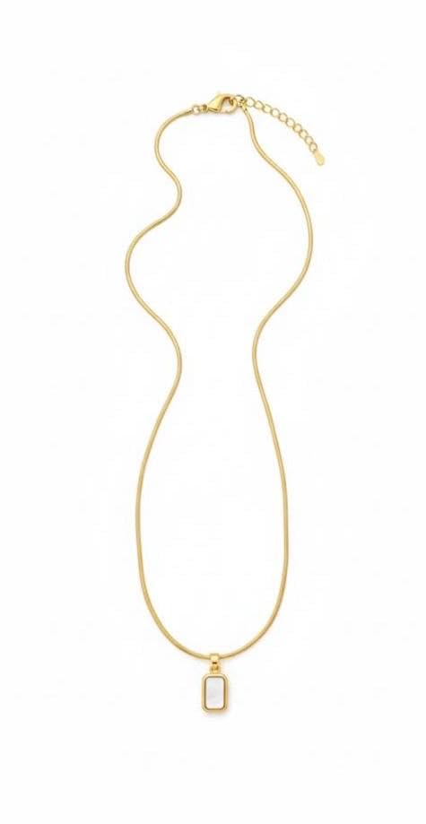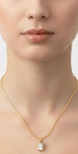 GOGO.EG - عقد بدلاية ذهبية، حجر ابيض مستطيل، سلسلة رقيقة، مجوهرات للنساء - YF31