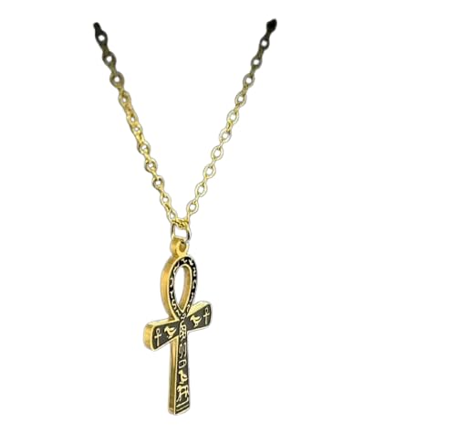 Generic - عقد بدلاية على شكل صليب عنخ مطلي بالذهب، سلسلة كيبل بطول 45 سم، نمط مصري