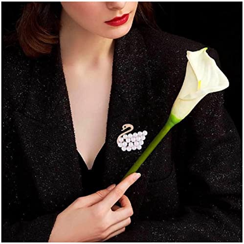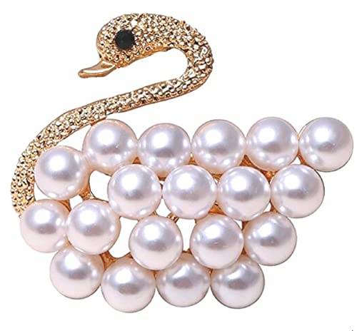 Generic - دبوس زخرفة بروش نسائي مطلي ذهب تصميم طائر الكرك مزخرف بالؤلؤء صناعي