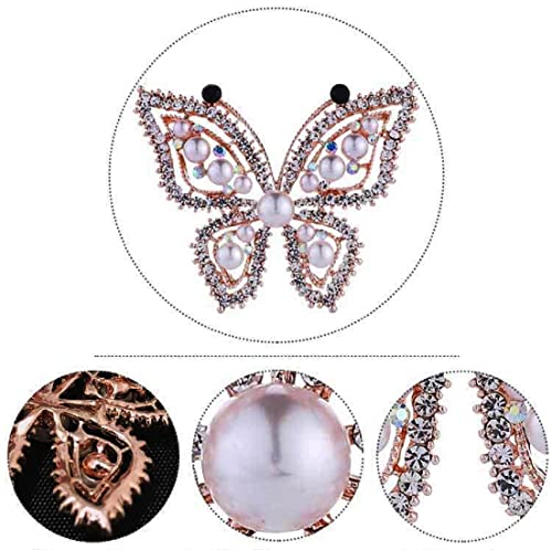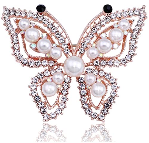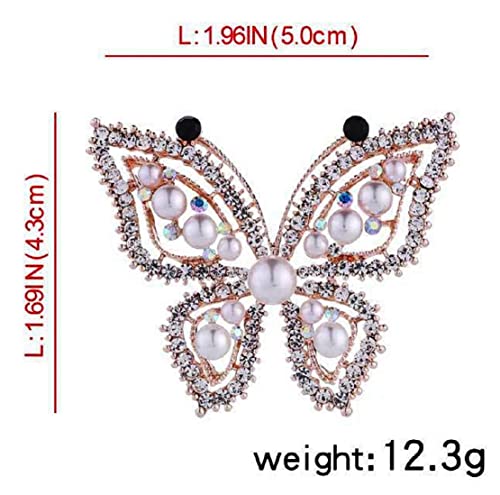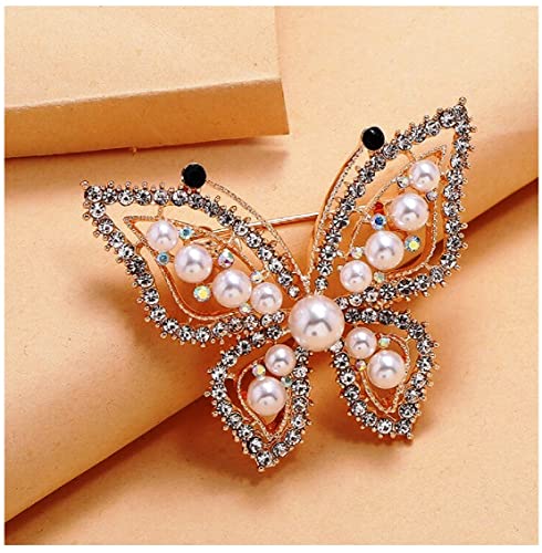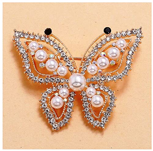 Generic - دبوس مطلي ذهب زخرفة تصميم فراشة مزخرف بالؤلؤء صناعي بروش نسائي