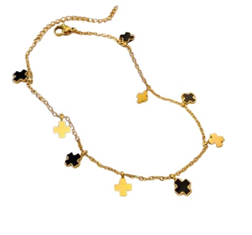 Generic - سوار سلسلة مطلي بالذهب مع دلايات متقاطعة باللونين الاسود والذهبي، مقاس قابل للتعديل