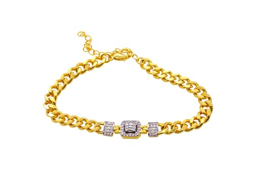 Generic - سوار بتصميم سلسلة مطلي بالذهب مرصع بالماس المركزي مع مشبك لوبستر، مقاس واحد - ذهبي