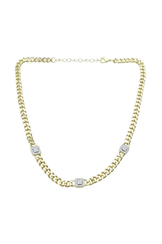Generic - سلسلة مكتنزة مطلية بالذهب مع لمسات كريستال بيضاوية ثلاثية للنساء - 2
