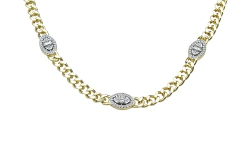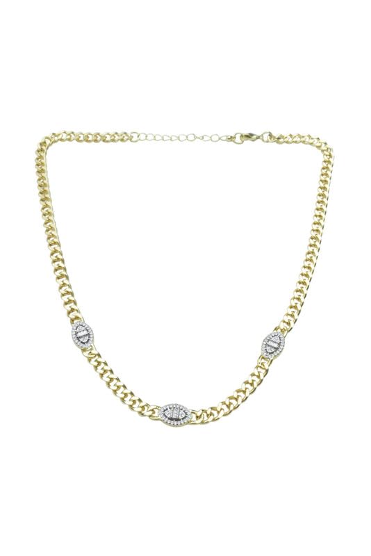 Generic - سلسلة مكتنزة مطلية بالذهب مع لمسات كريستال بيضاوية ثلاثية للنساء - ذهبي