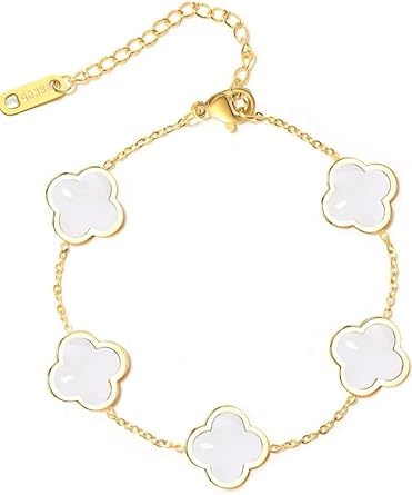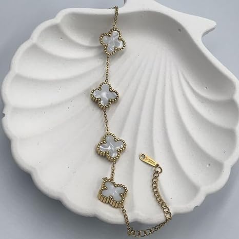 Generic - سوار بدلاية على شكل زهرة البرسيم مطلي بالذهب، طول قابل للتعديل، سوار من الستانلس ستيل 18 سم للنساء، ابيض
