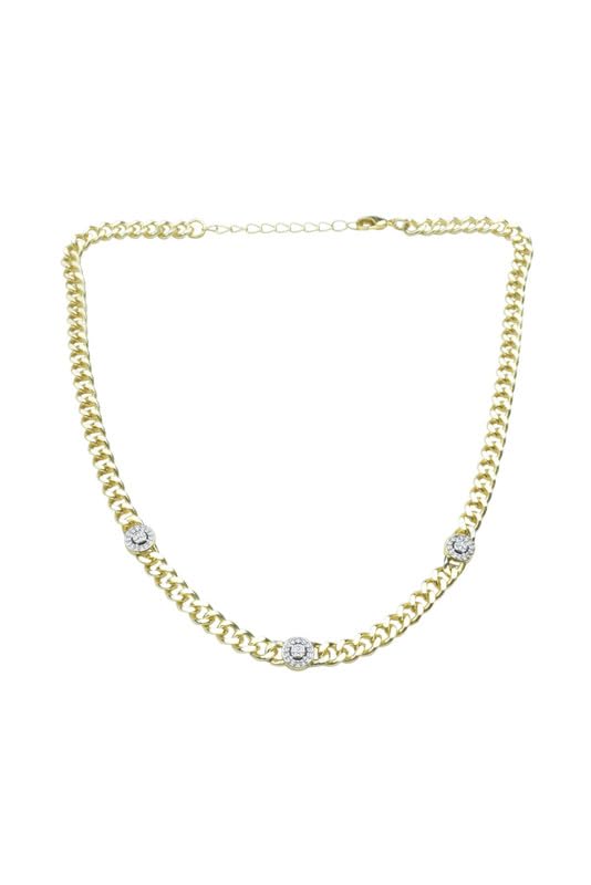Generic - سلسلة مطلية بالذهب مع قطع كريستال دائرية ثلاثية للنساء - ذهبي